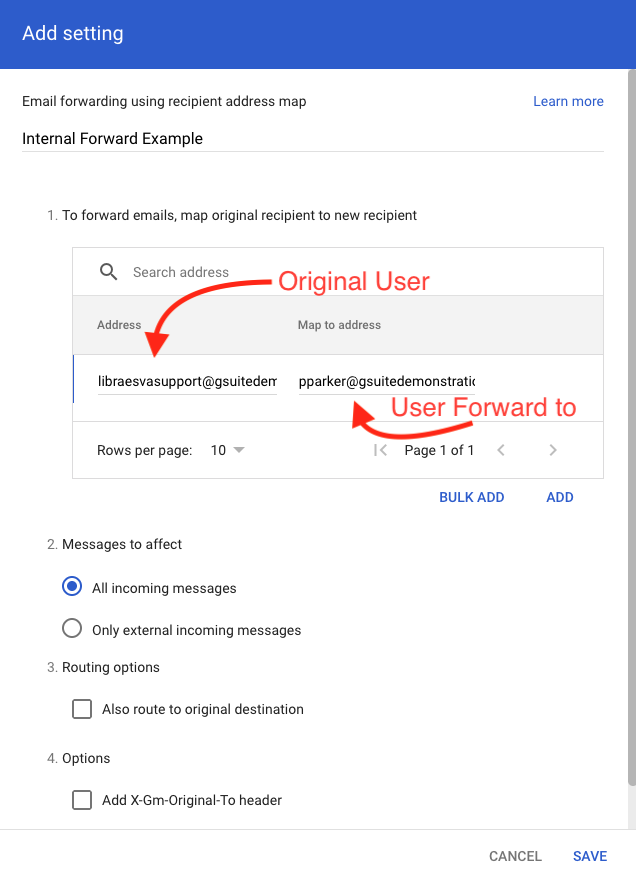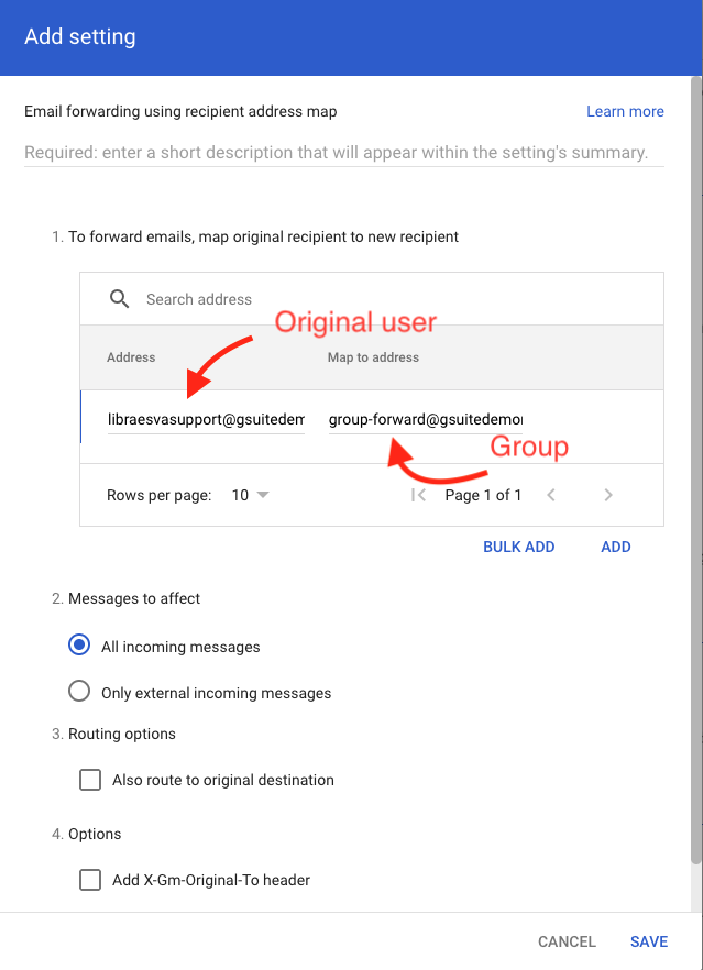 When in Google Workspace there are routing rules to forward emails to another mailbox within the same domain, Google delivers the message through the Email Security Gateway (ESG) without applying SRS (Sender Rewriting Scheme). This can cause the message to be rejected by ESG due to SPF or related authentication failures.